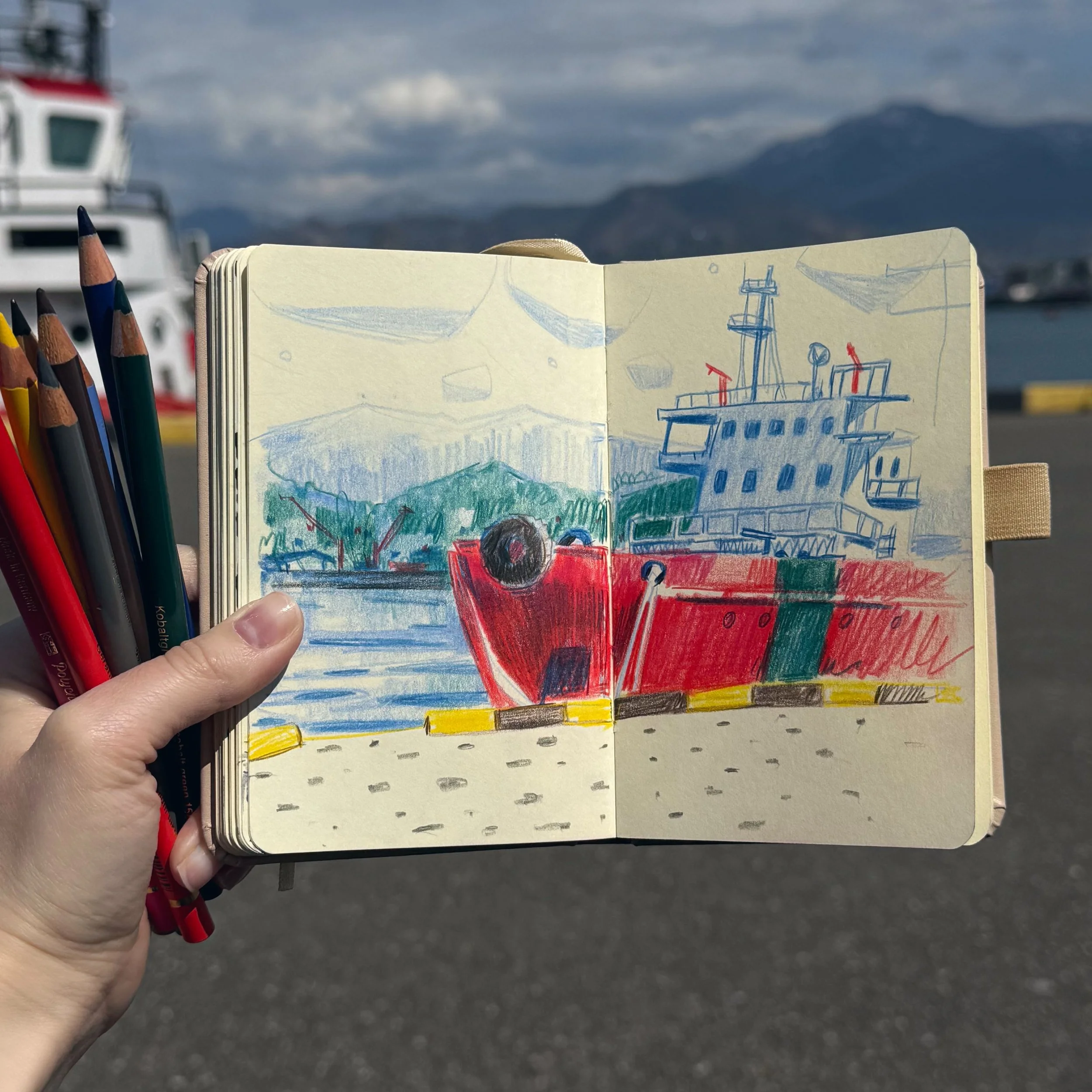 Southiick documents her outdoor sketching workshops on TikTok, filling page after page with the faces and creatures she encounters on location or showing the process of quick sketching. The sketchbooks become a kind of visual diary, not polished, not precious, but alive with the texture of being somewhere specific.