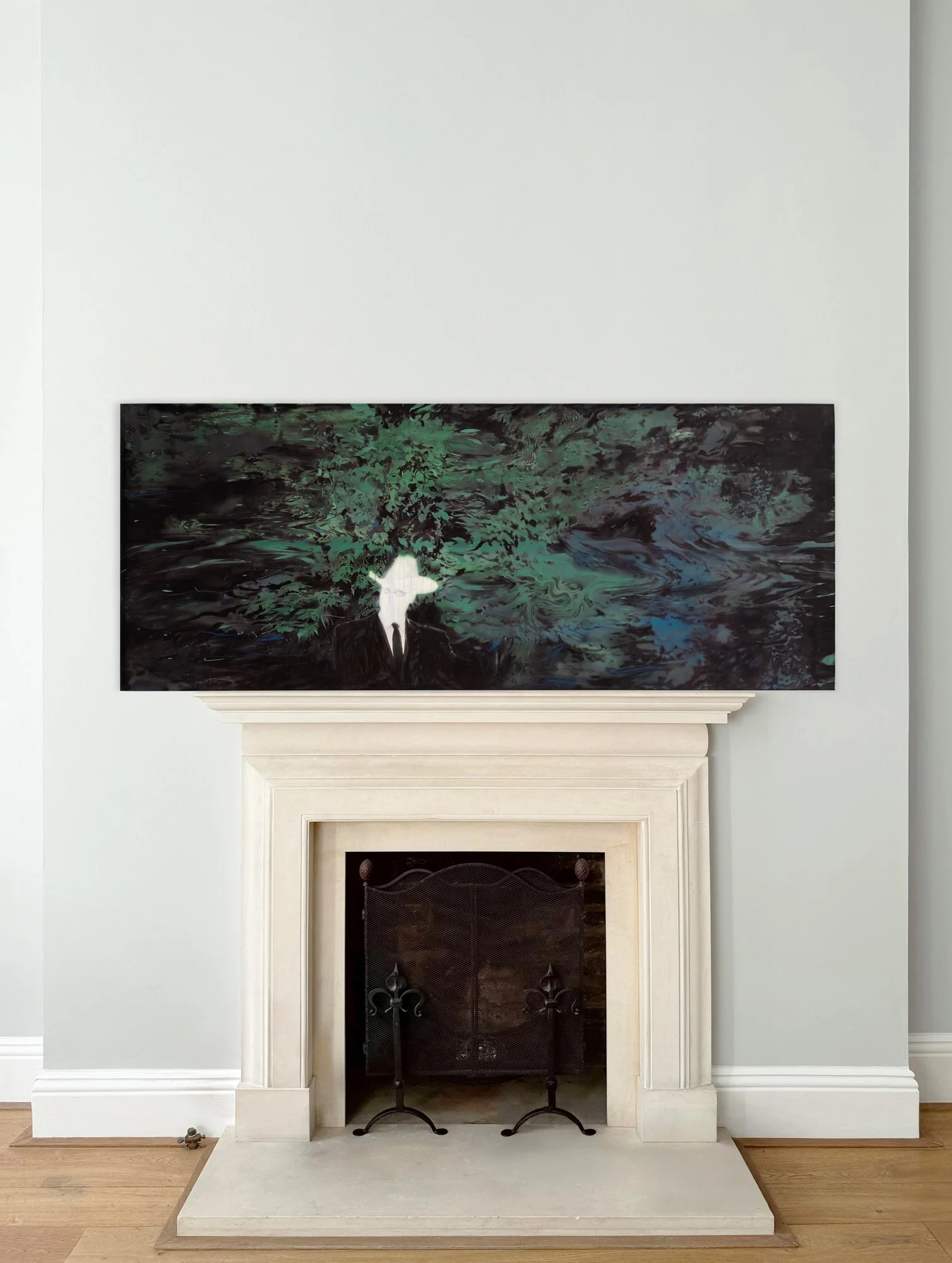 Only then does he enter the abstract field with figurative imagery, responding to what the water left behind.
