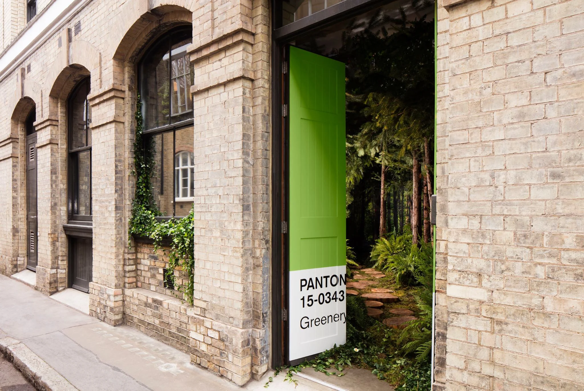 Pantone Colour of the Year - Greenery has been brought to life in Clerkenwell, London by collaboration with Airbnb. In-house experiences are interactive — guests can hear the sounds of nature, forage from its walls for herbs, drink tea with leaves picked from a hydroponics installation, choose plants to make terrarium vases, and even pick leaves to design custom-prints.
